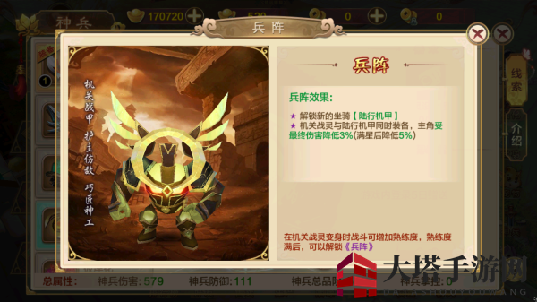机关战灵与陆行机甲同时装备,主角受最终伤害降低5%。